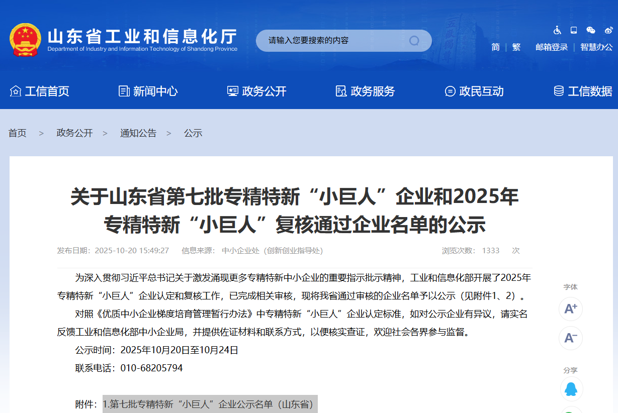 榮成經濟開發區:1家企業榮獲國家級專精特新“小巨人”企業稱號